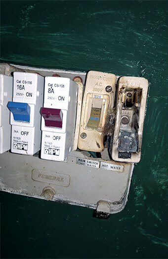 Emergency isolation and inspection of electrical systems affected by roof leaks, floods, or burst pipes, including safety testing and restoration.